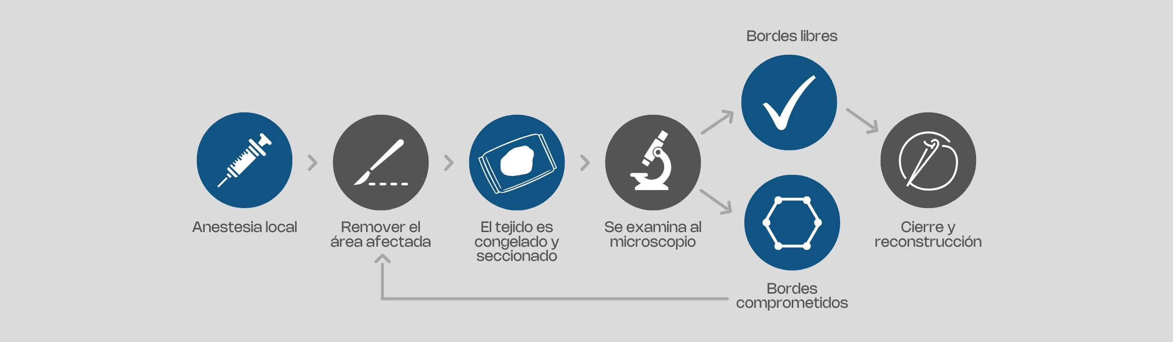 El tiempo del procedimiento varía, pero en general, puede durar varias horas. Esto se debe a que cada capa de piel extraída se examina bajo un microscopio hasta que todo el cáncer ha sido eliminado.